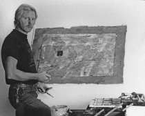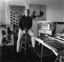 Painting exhibit and man at the Fall Arts Festival, date unknown - Print, Photographic