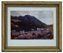 Color photo of a painting of Blithedale Hotel and outbuildings with Mount Tamalpais - This framed color photograph of a painting shows the Blithedale Hotel and outbuildings with Mount Tamalpais in the background. See notes.