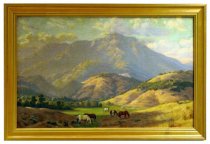 Oil painting of Mount Tamalpais from the south east and horses grazing - A framed oil painting of Mount Tamalpais from the southeast with horses grazing in the foreground. See notes.