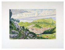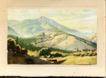 New Mill Valley and Alto Looking Northeast (artist's depiction) - This is a matted watercolor painting depicting Mill Valley from a hill. A piece of masking tape once affixed to the artwork read: "New Mill Valley and Alto looking NE".