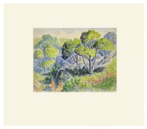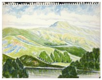 A watercolor painting of hills of Richardson Bay - This unframed watercolor was torn from a sketch book. It's a scenic view of tree-studded rolling hills. See notes on location.