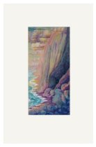 An impressionist view of ocean cliffs with rocks in the foreground - This watercolor is an impressionist view of ocean cliffs with rocks in the foreground. See notes.